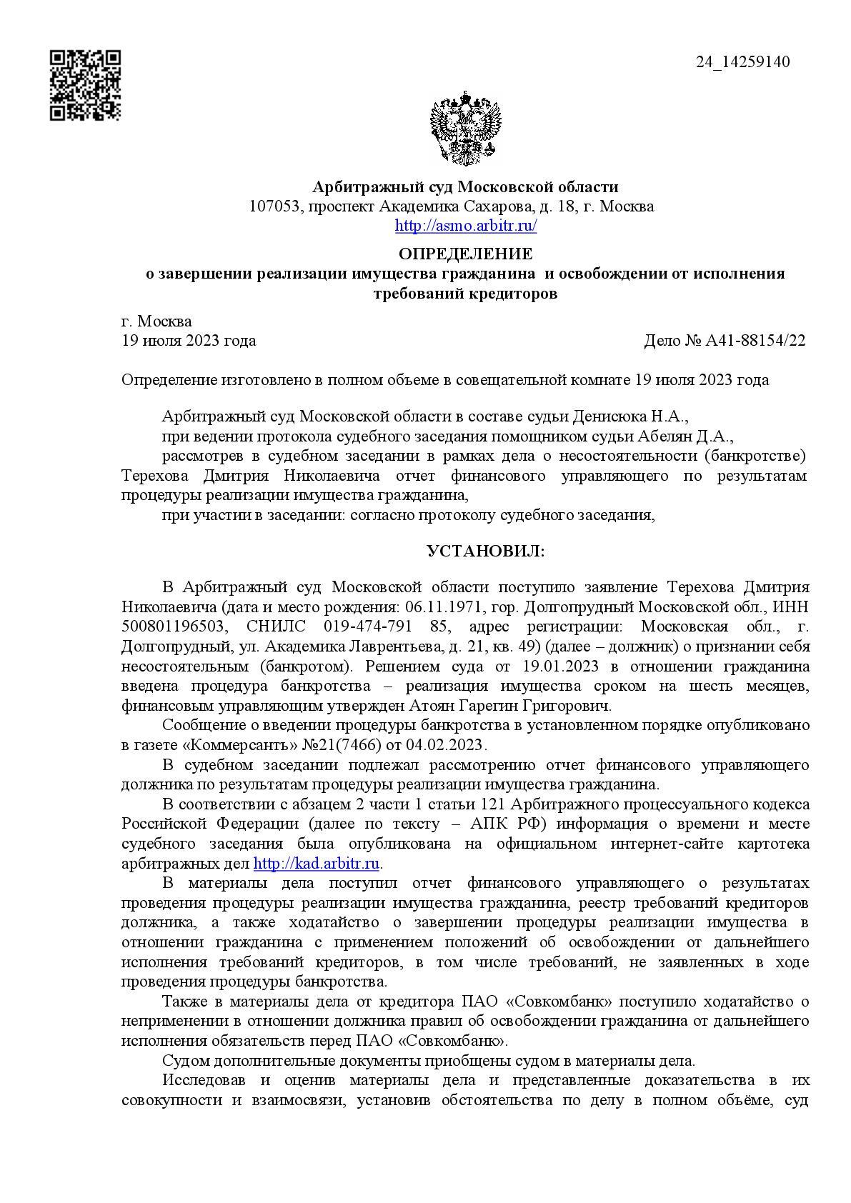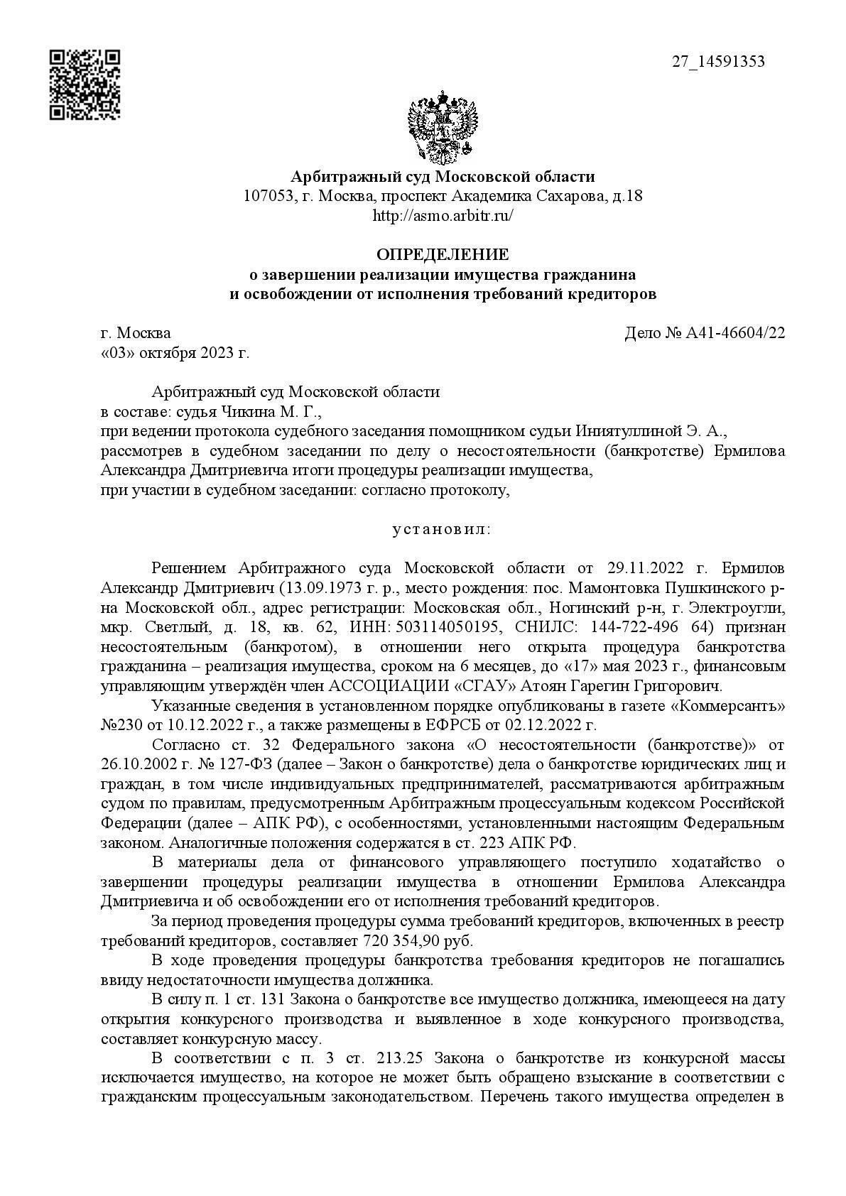 Регистрационный номер в реестре арбитражных управляющих – 20387